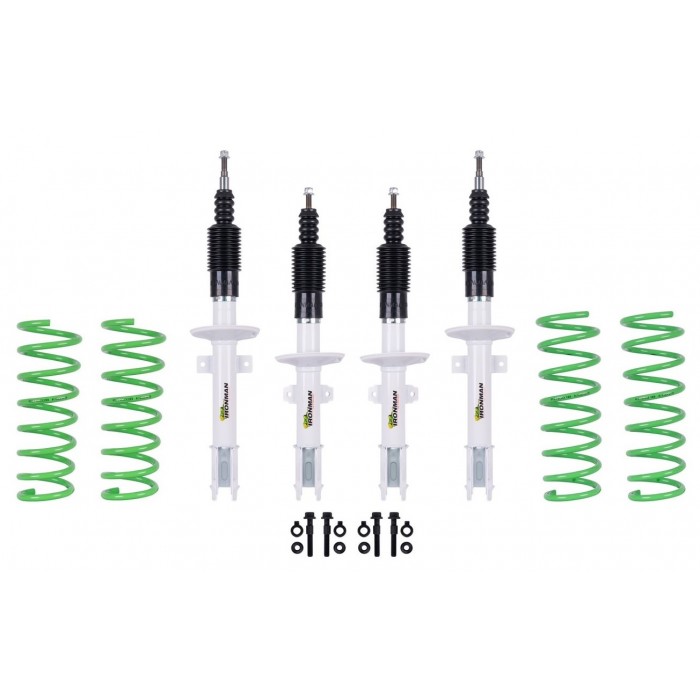 Kitul contine: 4 arcuri + 4 amortizoare + 2 kituri de suruburi corectie geometrie.