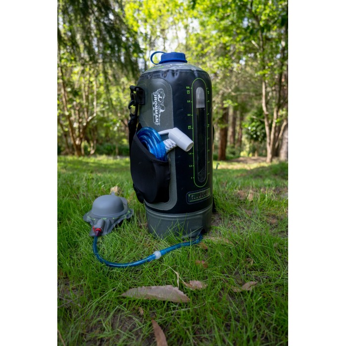 Shower water is delivered through a trigger-spray allowing you to ensure ultimate control over water usage, and even includes a water-level indicator and a handy temperature gauge. The super strong 420D TPU bag stands independently and features carry-handles and even a storage pocket for the shampoo!