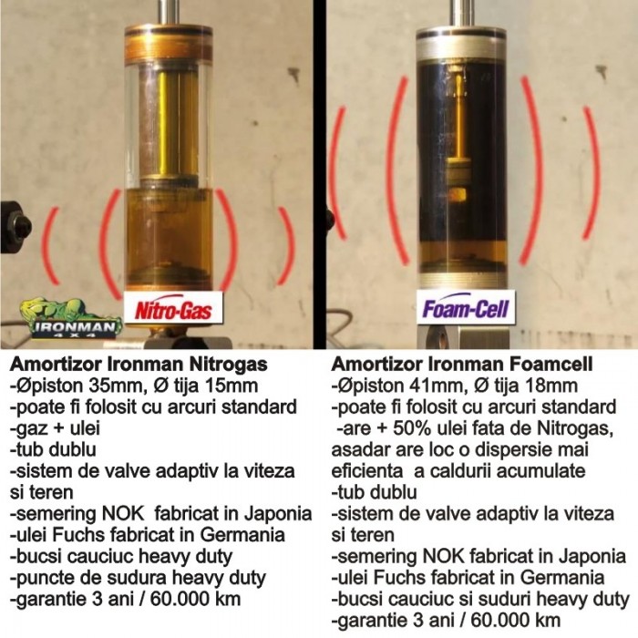 Vizitati Intrebari frecventepentru folosirea amortizoarelor Ironman4x4 cu arcuri standard sau montaj Nitrogas pe o punte si FoamCell pe alta punte.